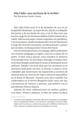Por diversas razones, Ilda Cádiz tuvo poca visibilidad como autora en vida. Por ello esta edición cuenta con un prólogo de la investigadora Macarena Cortés en el que aporta datos biográficos y profundiza sobre su omisión en el campo literario chileno. En el año 1977, la escritora María Carolina Geel reparaba en ello, preguntándose: